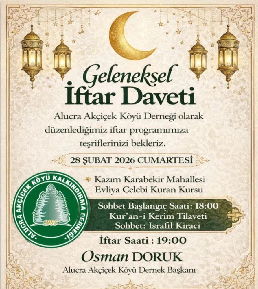 İstanbul’da yaşayan Akçiçeklileri bir araya getirerek gurbette memleket ruhunu yaşatmayı amaçlayan Geleneksel İftar Yemeği, bu yıl 28 Şubat Cumartesi günü Gaziosmanpaşa’da gerçekleştirilecek. Birlik ve beraberliğin en güzel örneklerinden birine sahne olması beklenen organizasyon, kadın-erkek tüm üyelerin katılımına açık olacak.
