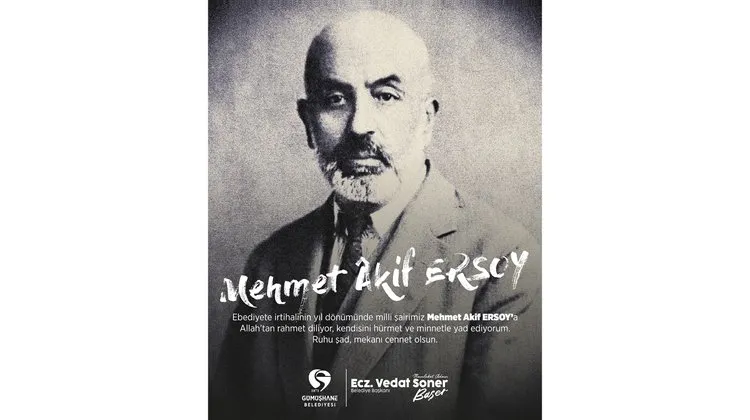 Gümüşhane Belediye Başkanı, İstiklal Marşı şairi Mehmet Akif Ersoy'u ebediyete irtihalinin yıl dönümünde andı. Milli şair için Allah'tan rahmet dileyen Başkan, "Ruhu şad, mekanı cennet olsun" ifadelerini kullandı.