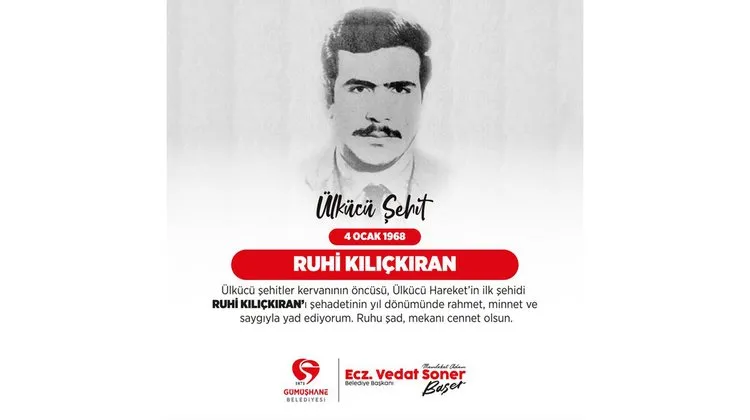 Gümüşhane Belediye Başkanı, Ülkücü Hareket'in ilk şehidi olarak anılan Ruhi Kılıçkıran'ı şehadet yıl dönümünde andı.