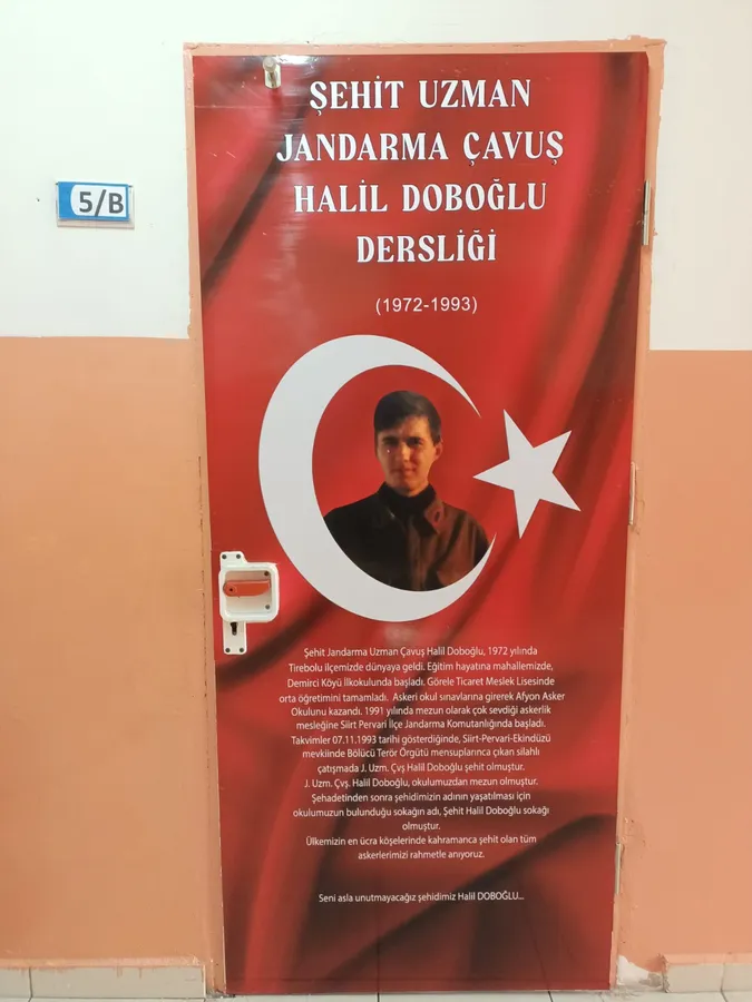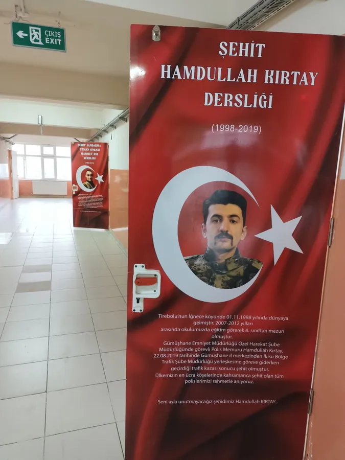Tirebolu Fatih Sultan Mehmet İlk/Ortaokulu, "Ahde Vefa Projesi" kapsamında sınıf kapılarını Tirebolulu şehitlerimizin fotoğrafları ve hayat hikâyeleri ile kaplattı